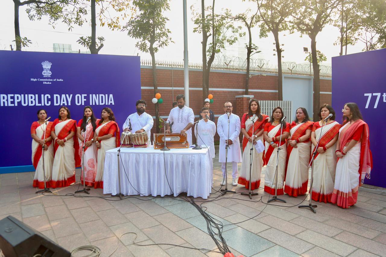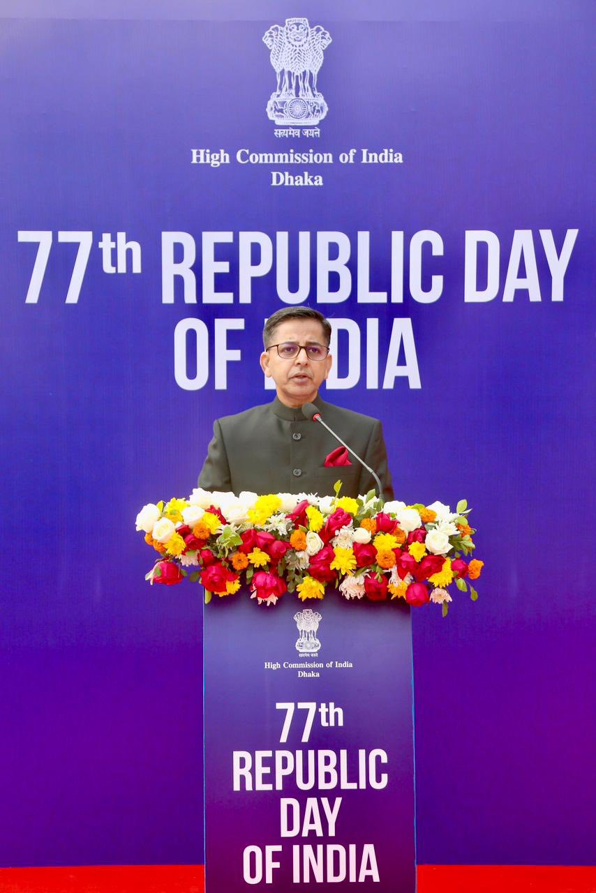 High Commissioner Pranay Verma unfurled the National Flag and read out the address to the nation by the President of India. Members of the Indian Community in Dhaka joined the event and presented a colourful cultural programme.