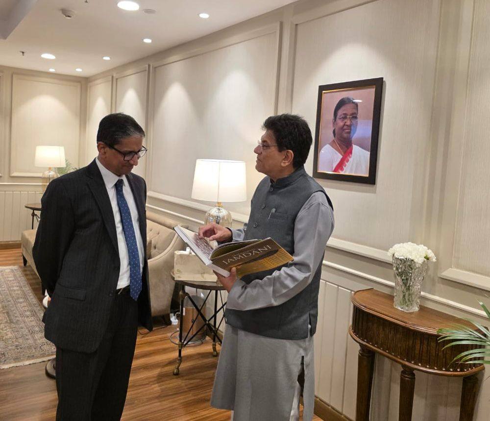 High Commissioner, HE M Riaz Hamidullah, met with Minister for Commerce and Industry, HE Piyush Goyal, this evening.
