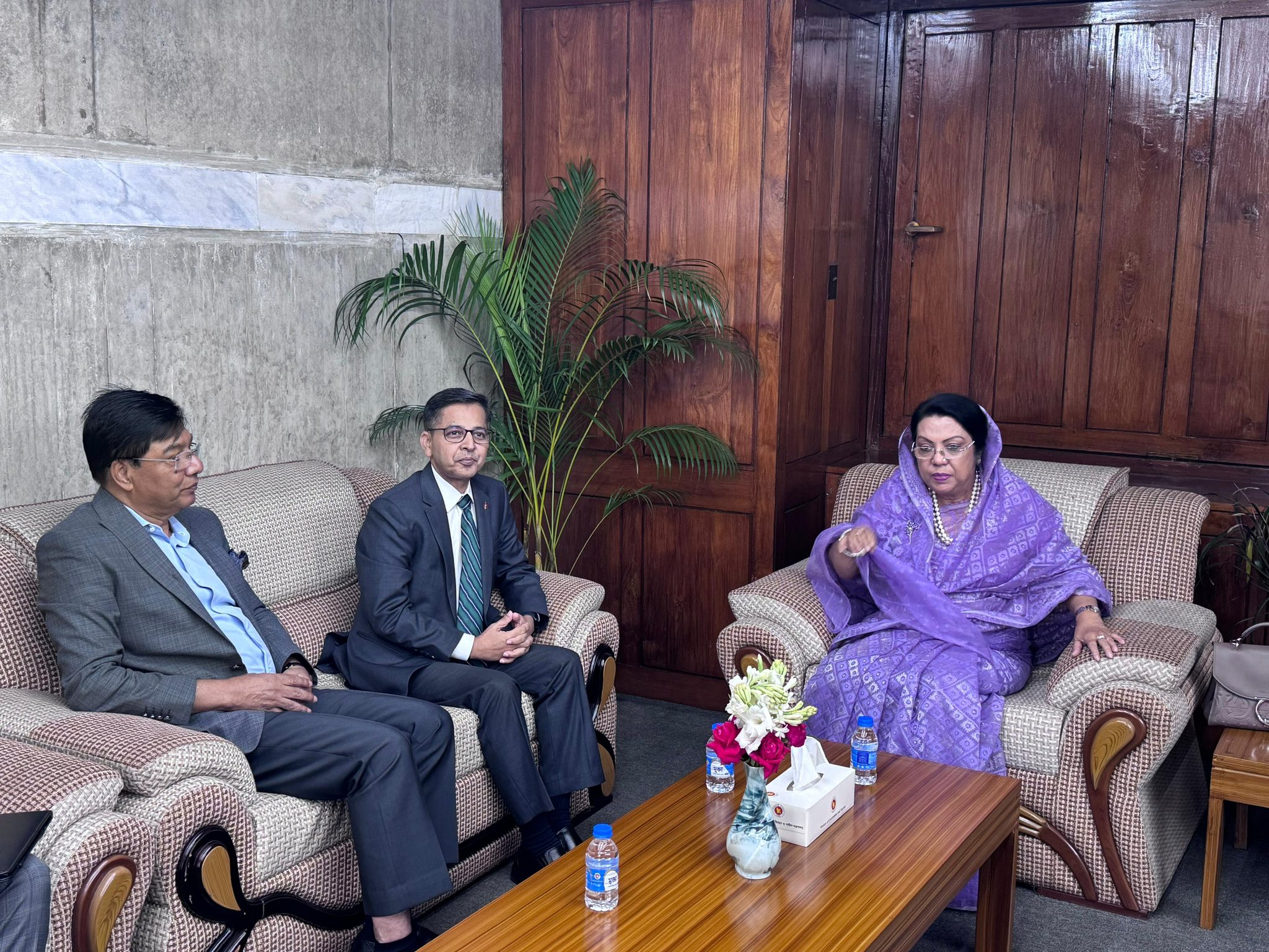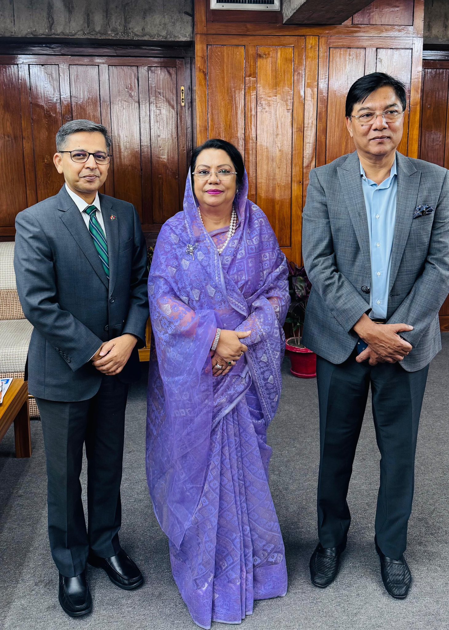 High Commissioner Pranay Verma paid a courtesy call on Minister of Civil Aviation and Tourism H.E. Mrs. Afroza Khanam Rita on 09 April 2026. Minister of State for Civil Aviation and Tourism H.E. M Rashiduzzaman Millat also joined the meeting.