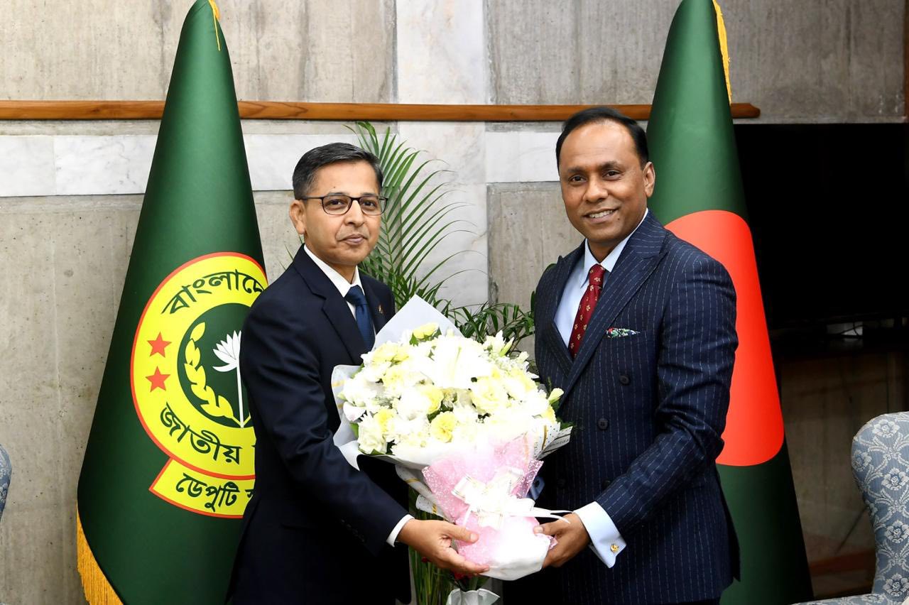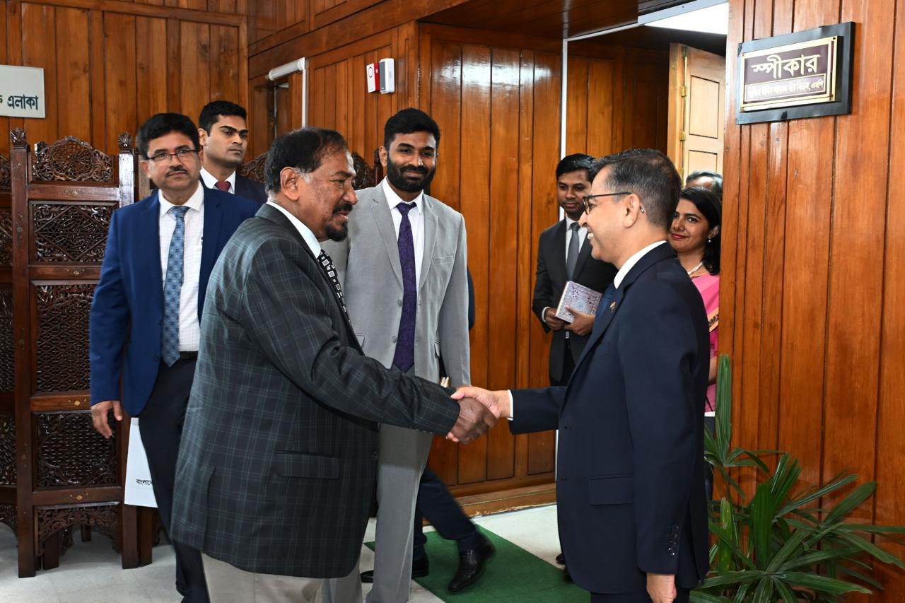 হাই কমিশনার প্রণয় ভার্মা ১৩ এপ্রিল ২০২৬-এ বাংলাদেশ জাতীয় সংসদের মাননীয় স্পিকার জনাব মেজর (অব.) হাফিজ উদ্দিন আহমদ, বীর বিক্রম এবং মাননীয় ডেপুটি স্পিকার জনাব ব্যারিষ্টার কায়সার কামাল-এর সঙ্গে বাংলাদেশ জাতীয় সংসদে পৃথক পৃথক সৌজন্য সাক্ষাৎ করেন।